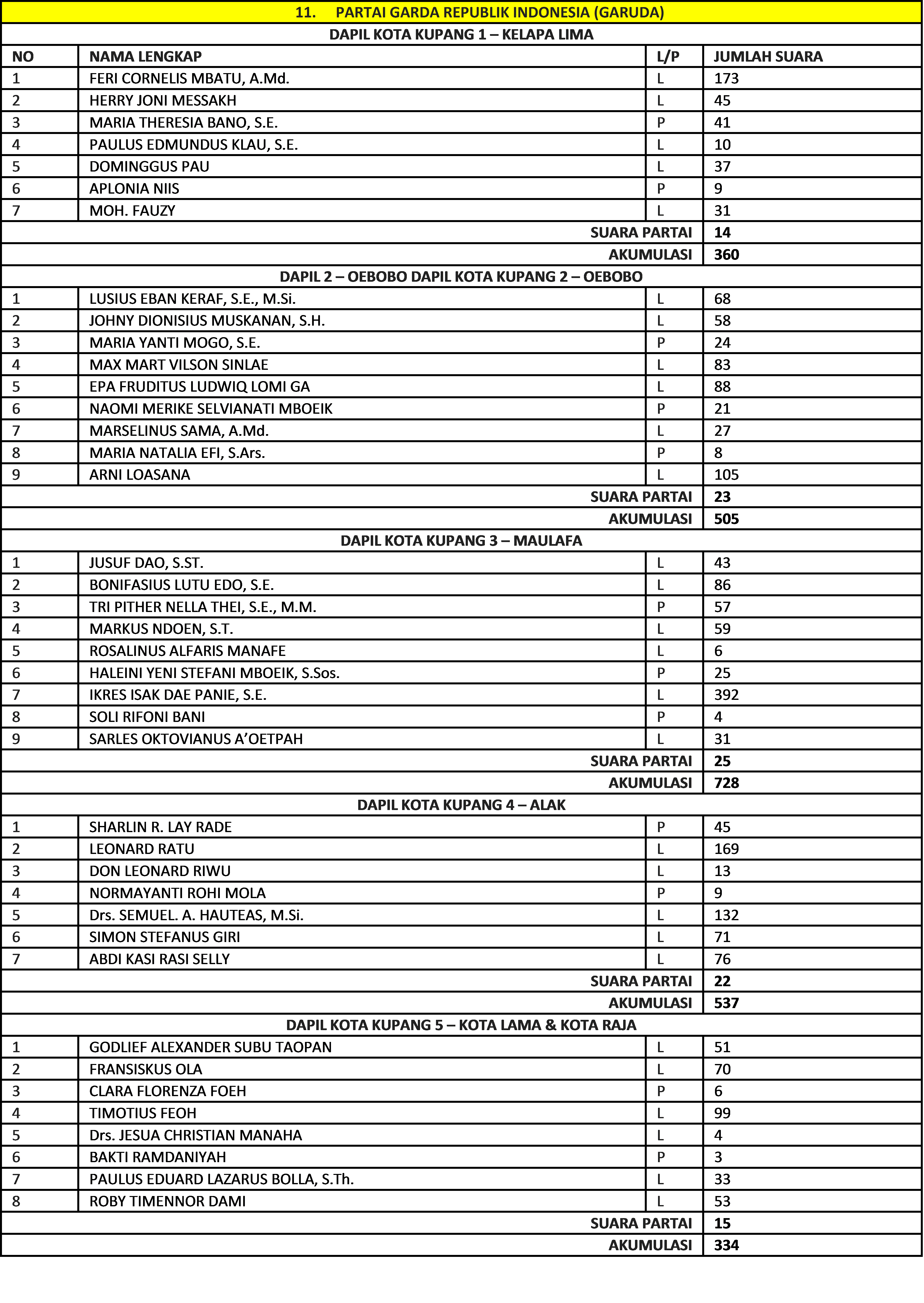 Berikut hasil perolehan suara yang didapat oleh masing-masing Caleg dari masing-masing Partai Politik (18 Partai Politik):
