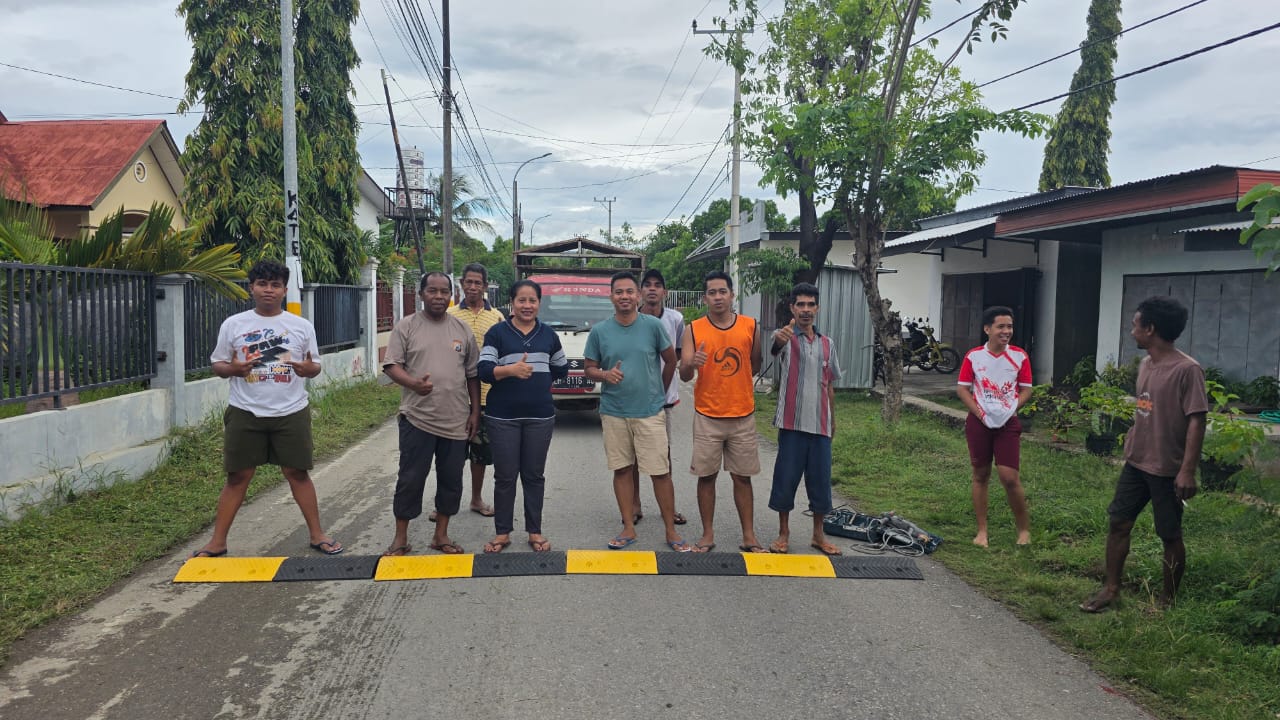 Rosalinda juga menyerahkan bantuan satu set polisi tidur berbahan karet (rubber speed bump) yang langsung dipasang di Jalan Fatutuan, salah satu titik yang dinilai rawan kecelakaan.
